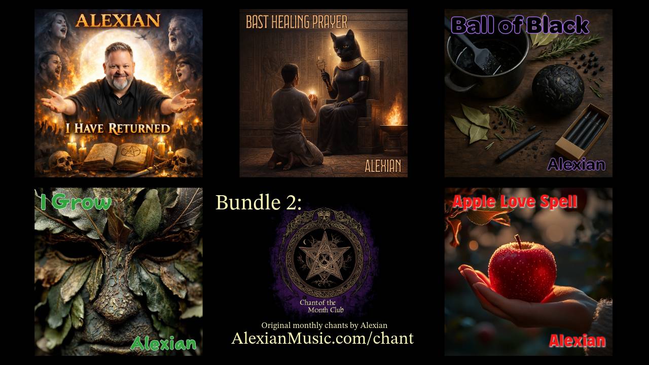 Chant of the Month â Bundle 02 â¨đś Bundle 02 gathers five powerful ritual chants and spell songs by Alexian, created for real-world Pagan practice, meditation, and sacred work. Each piece carries focused intentionâmeant to be sung, spoken, or played as part of your personal Craft. đŻ Included Chants & Spell Songs: I Have Returned đĽ â A chant of rebirth, reclaiming power, and owning the word Witch with truth and love. Bast Healing Chant đąđ â A gentle, restorative invocation honoring Bast for comfort, protection, and healing. Ball of Black âŤđĄ â A powerful magick chant for banishing, shielding, and energetic cleansing. Great for shadow work! I Grow đżđ â A devotional chant to the Green Man, celebrating growth, vitality, and life-force. Apple Love Spell đđ â A love spell chant that also includes instructions for crafting your own magickal apple-seed handfasting cord. ⨠These chants are not available on streaming platforms and are created exclusively for direct spiritual use. Bundle 02 is perfect for witches, Pagans, and practitioners seeking music with purpose, magick, and heart.